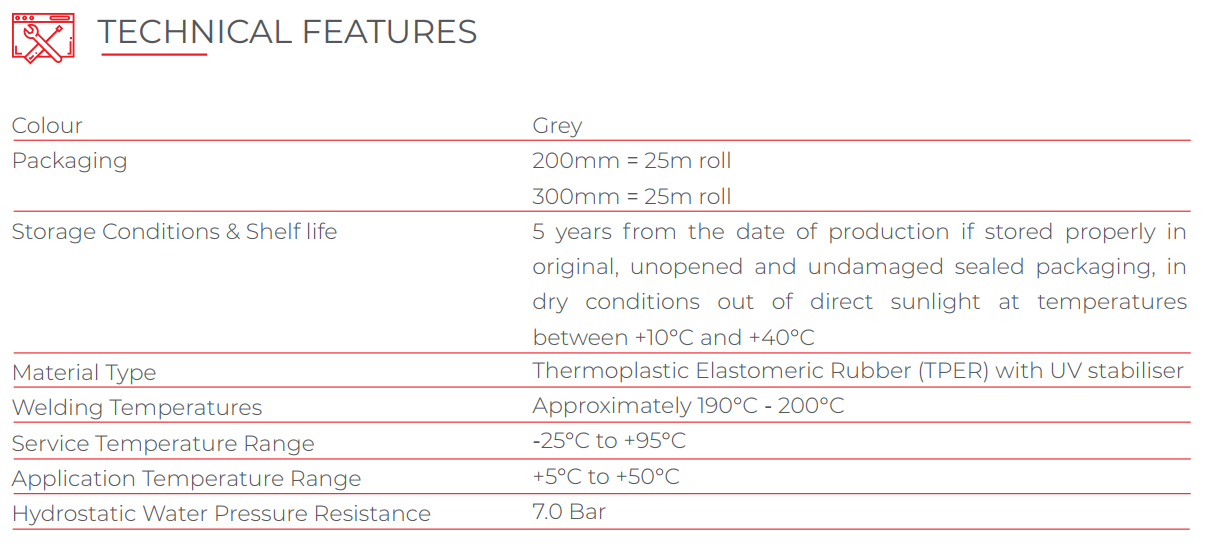 • Joining of product is by heat welding providing an integrated continuous membrane.